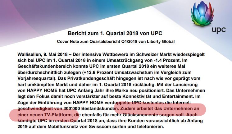 Davon will UPC momentan aber gar nichts wissen. Die Nachfrage sei zu klein, obwohl die eigene Netzinfrastruktur für die Technologie bereit wäre, so Strapp.