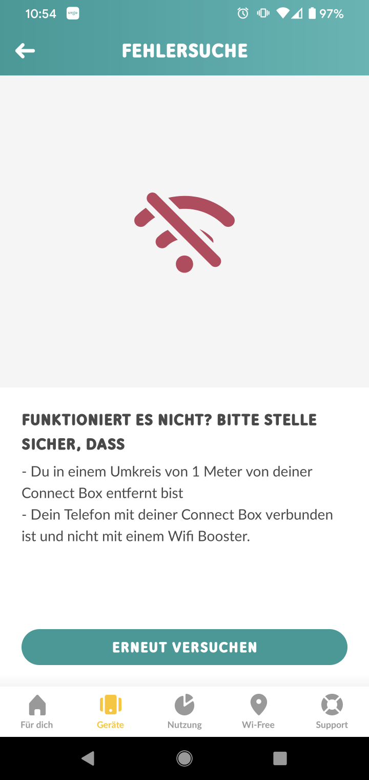 Ich musste relativ energisch werden, bis er mir glaubte, dass es weder auf dem 2.4er noch dem 5er Netz, weder mittels Iphone, noch Android-Handy oder Tablet funktioniert und ich daher auch keine Wifi-Booster über die App bestellen kann.