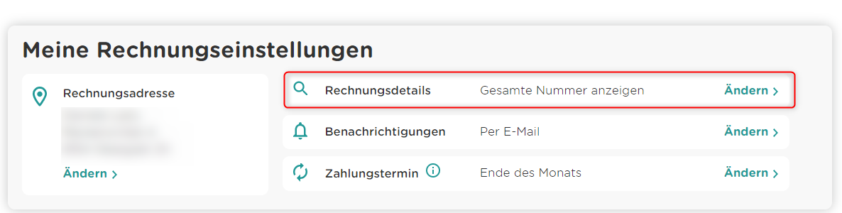 - Ändere bei den Rechnungseinstellungen den rot markierten Bereich wie im Bild ersichtlich.