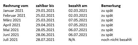 Bedauerlicherweise kann ich die Mahngebühren nicht gutschreiben.