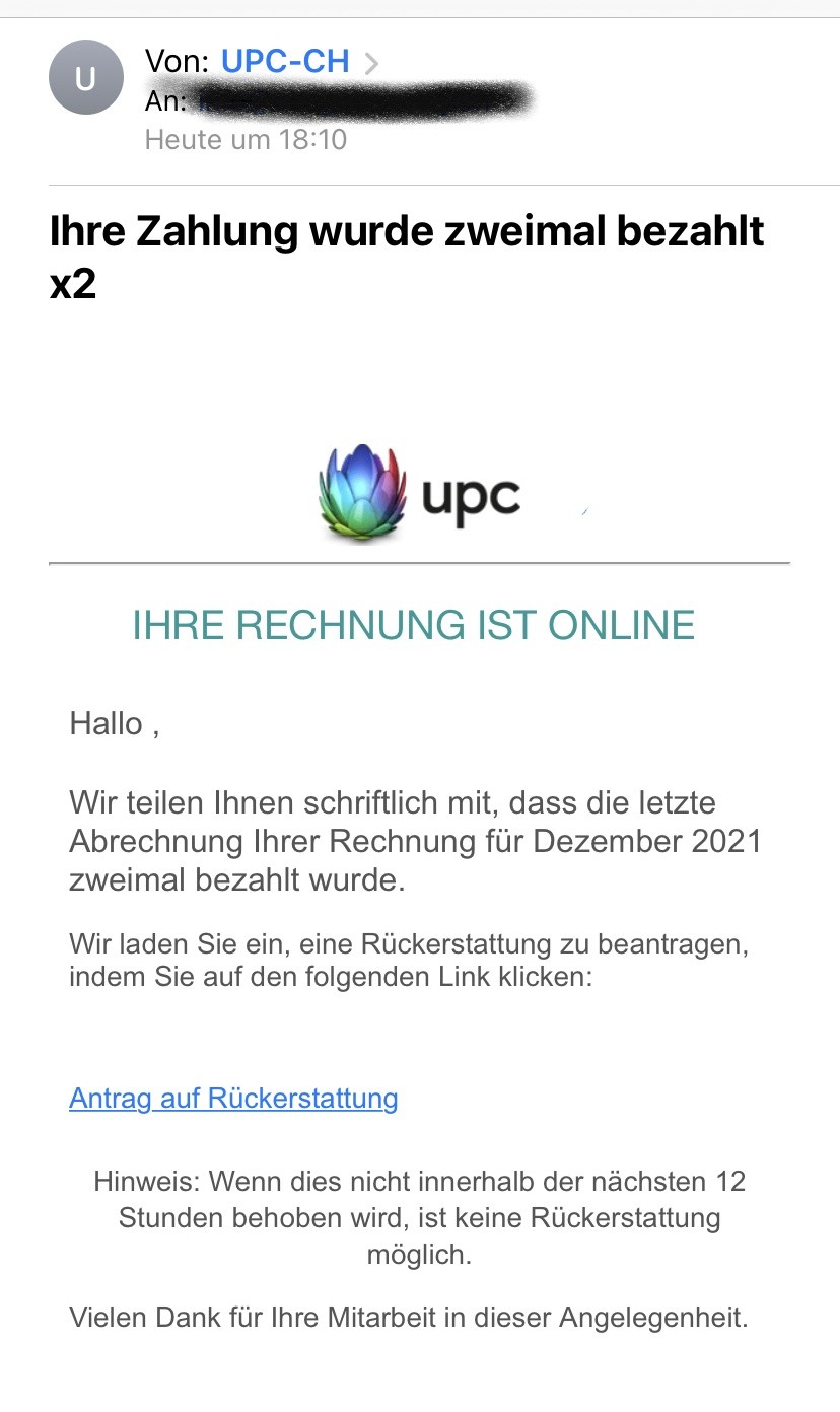 Punisher Hallo stefu87 Danke für die Info. Für diejenigen die auch so eine E - Mail bekommen haben wie stefu87 eben, leitet bitte diese E - Mail an: abuse@upc.ch weiter. AUF KEINEN FALL DEN LINK AN KLICKEN !!!