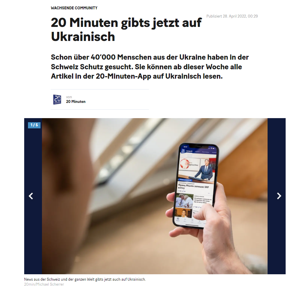 20 Minuten gibts jetzt auf Ukrainisch