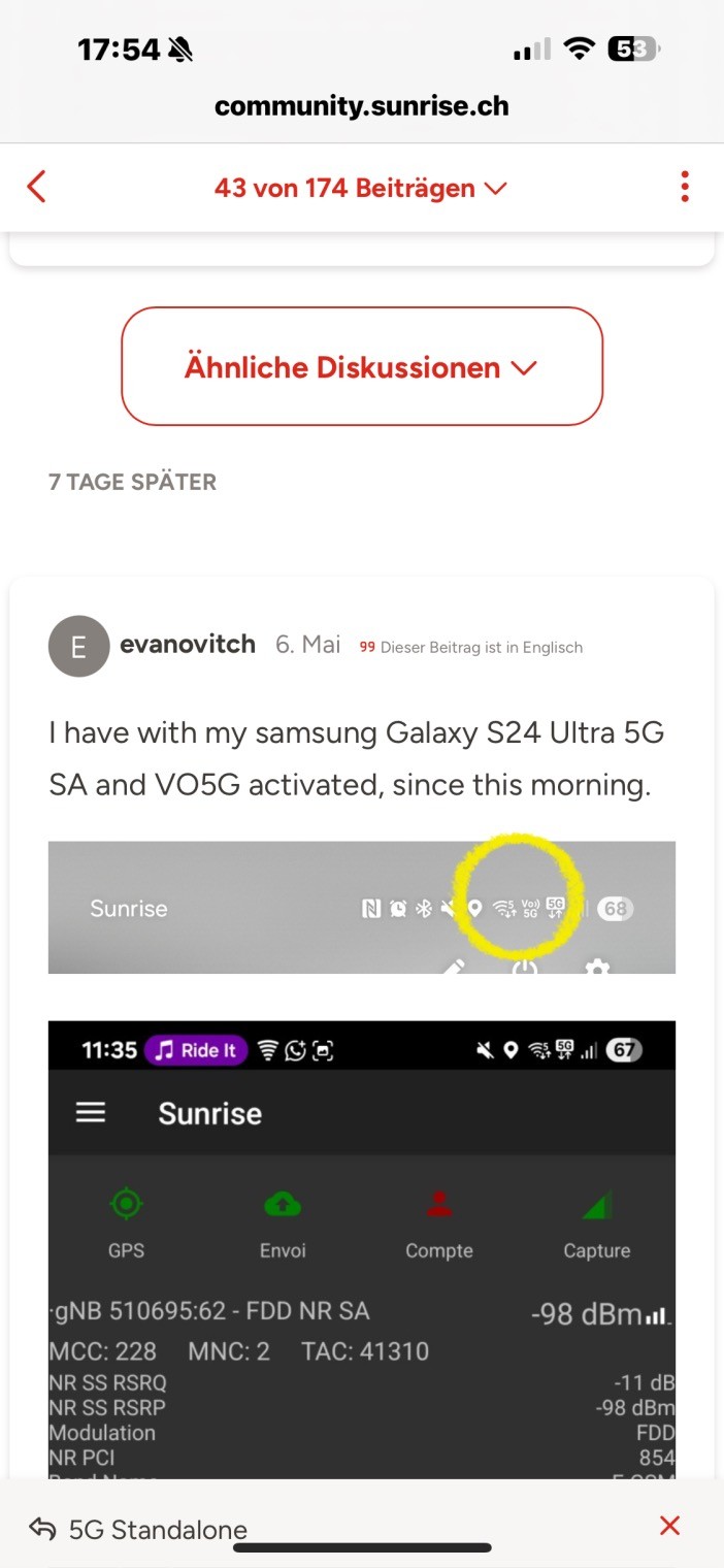Leut_Sunrise JayJay Yallo hat mir subtil bestätigt, dass 5G SA ebenfalls aktiviert wird, aber erst nachdem alle alten Sunrise-Abonnements aktiviert sind.