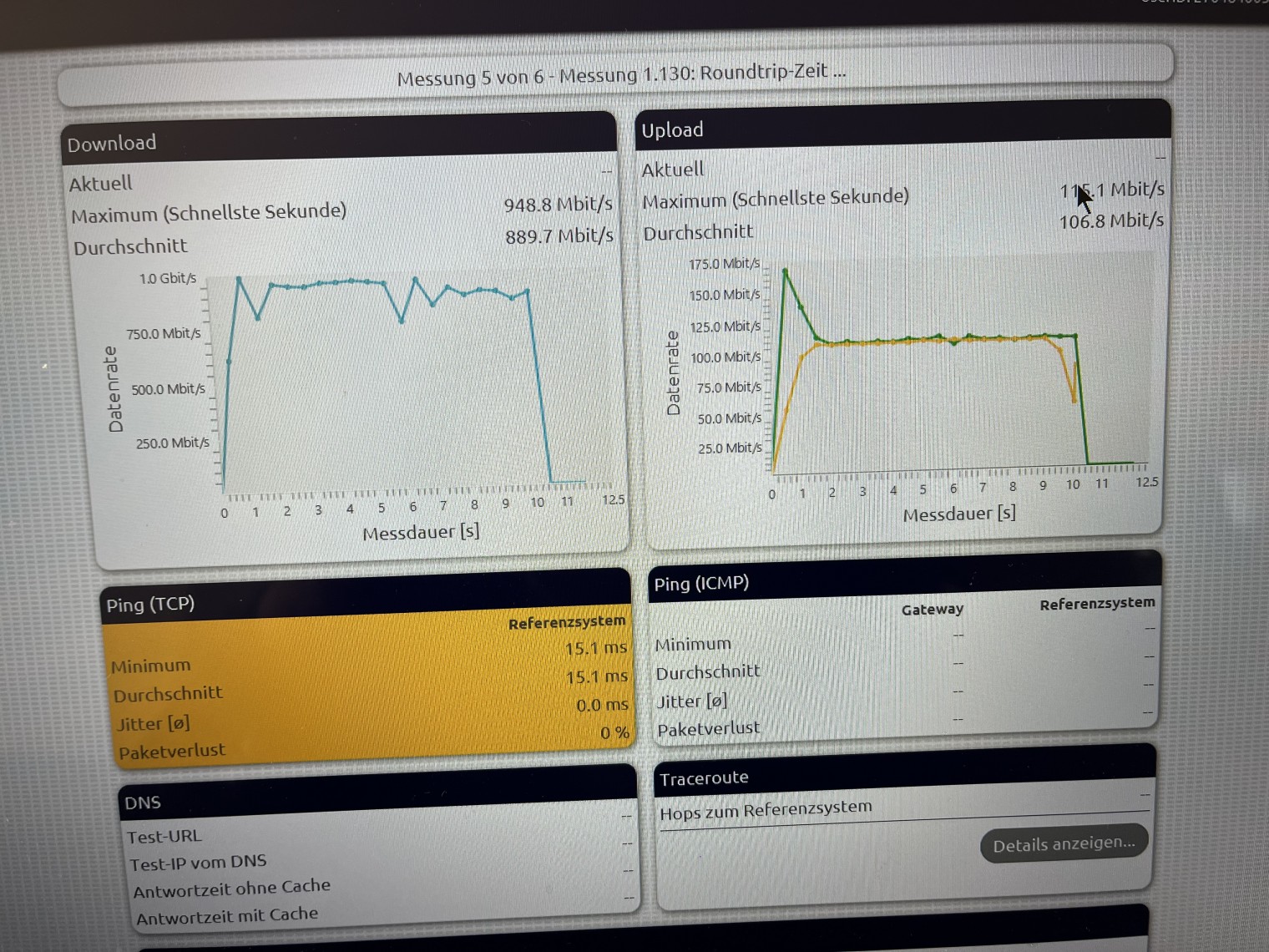 Hallo Daniele, Connect Box ist heute morgen eingetroffen. Habe diese installiert und seit ca. 1.5 Stunden läuft die neue Box auch das TV läuft für den Moment einwandfrei. Ich werde mal schauen wie es heute Abend aussieht. Betreffs Terminvereinbarung kann ich für den Moment keine Online Termine buchen da zur Zeit scheinbar keine Termine zur Verfügung stehen. Ich werde mal abwarten bis mich jemand von Sunrise anruft. Habe mit cnlab anschliessend mal ein paar Messungen gemacht sieht für den Moment noch sehr instabil aus. Auf meinem Lenovo Laptop erreiche ich 1 GB DL das ist der Grenzwert des Netzwerkadapters.