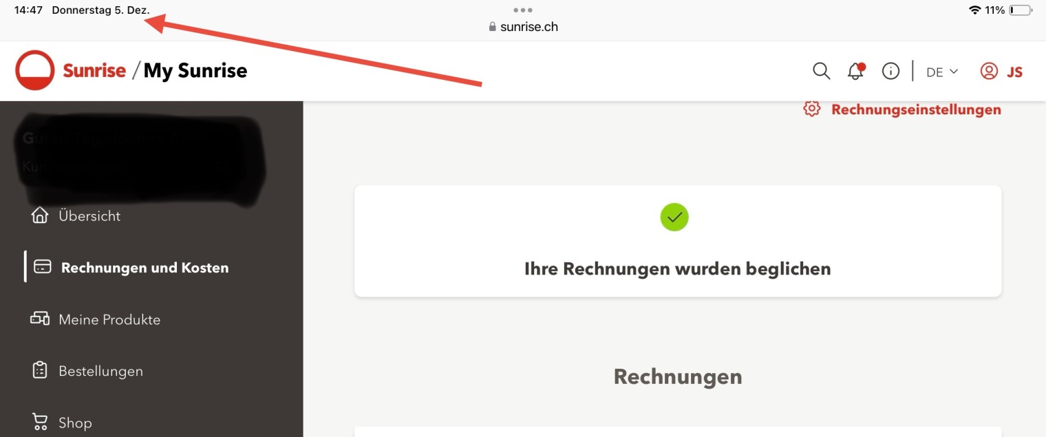 Darf ich Ihnen deshalb empfehlen, künftig die Sunrise Rechnungen mit E-Bill und Lasteneinzug zu begleichen?