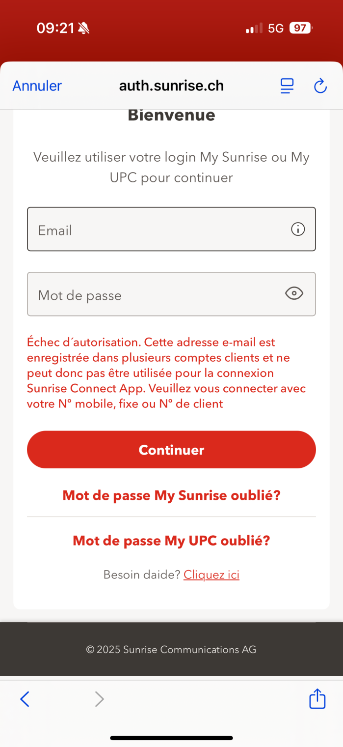 Daniele_Sunrise Anonymous183 Bienvenue dans la communauté ! Pouvez-vous tester la connexion avec votre adresse e-mail MySunrise et votre mot de passe ? Salutations Daniele