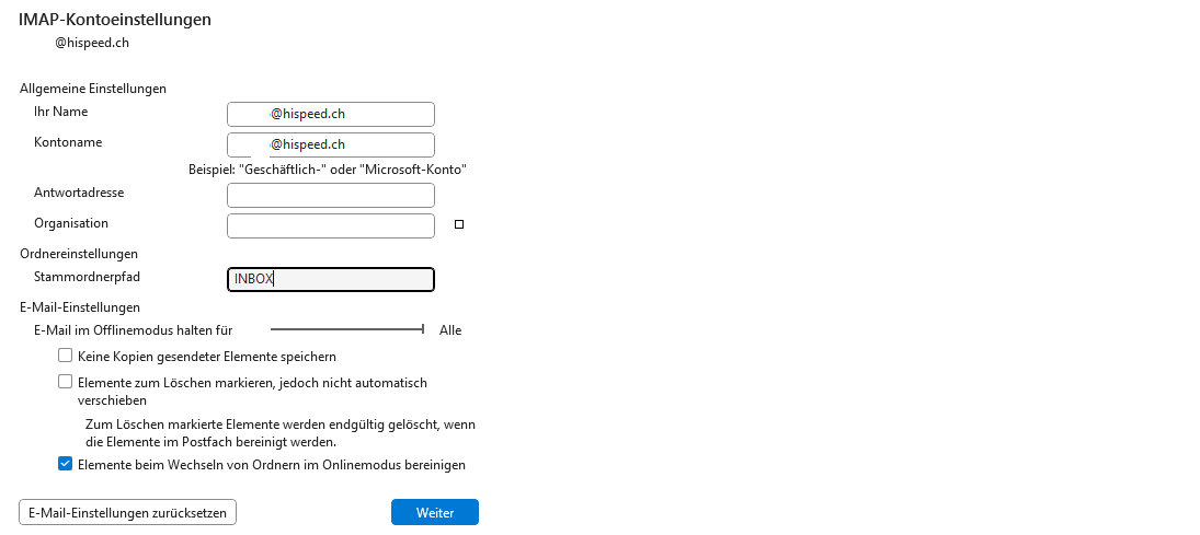 Und bei den abonnierten IMAP-Ordnern sieht es danach so aus: