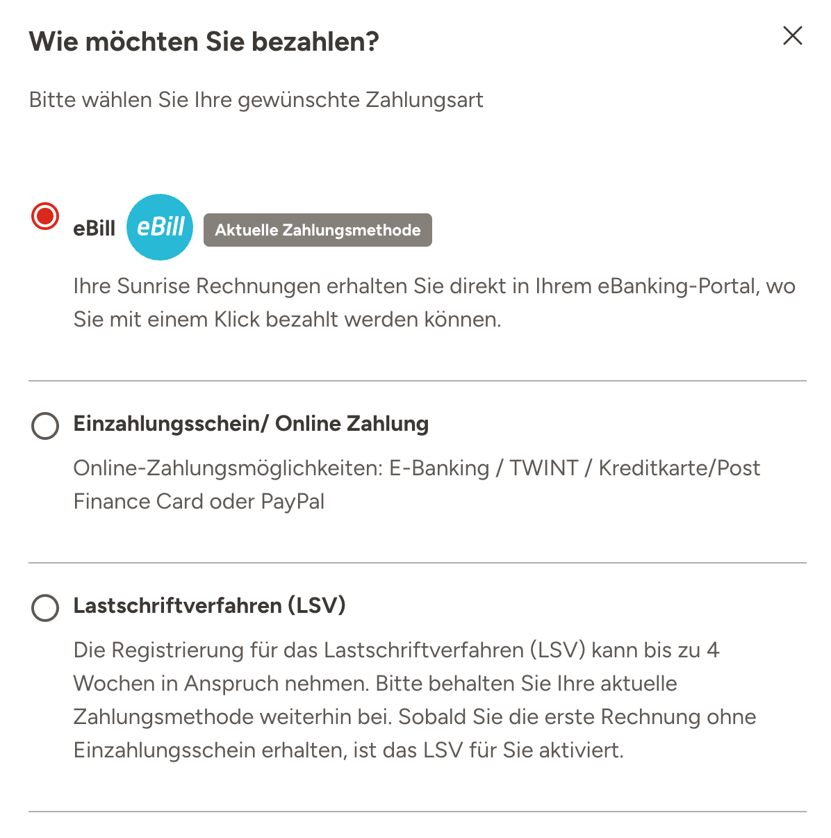 maxell182 louis43 Diese Einstellungen must du bei im eBill Portal machen, am besten logst du dich in einem eBanking Portal ein und gehst dort auf “eBill” von dort kommst du aufs eBill Portal. Weitere Infos findest du auch auf: eBill Home eBill ist ein externer Dienst, wie du über eBill informiert wirst/werden willst kann Sunrise nicht beeinflussen. Gruss maxell182