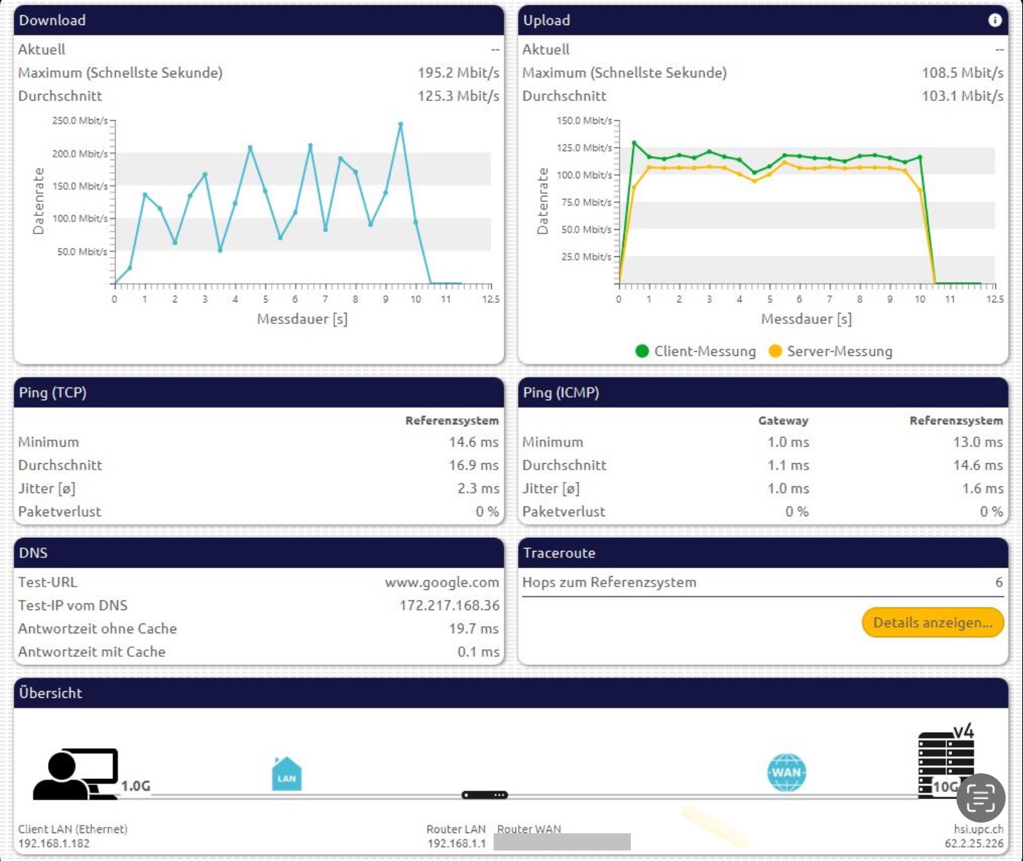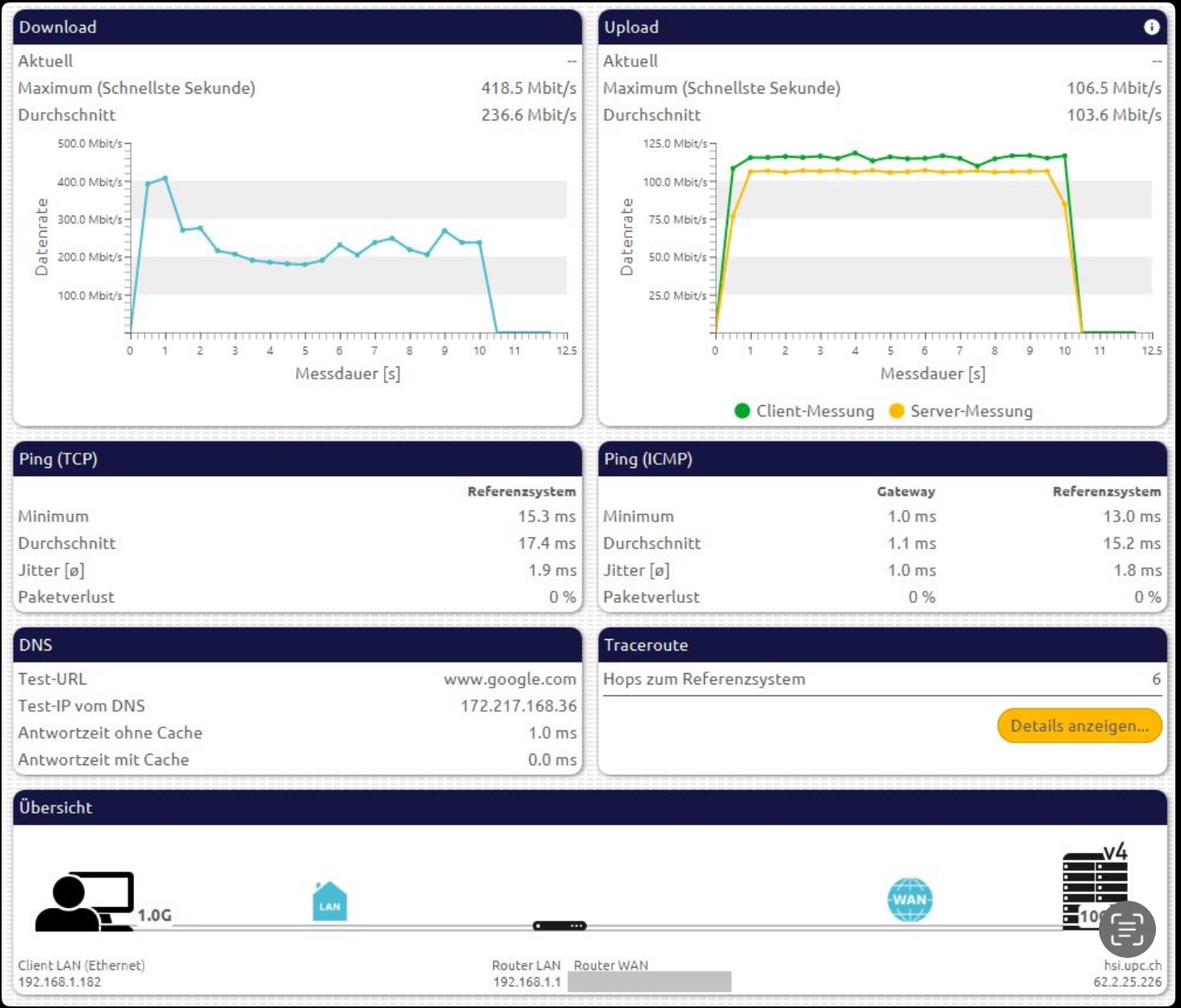 Die Speedtests per LAN mache ich immer mit meinem Notebook, welches eine geeignete Netzwerkkarte für diese Geschwindigkeit hat.