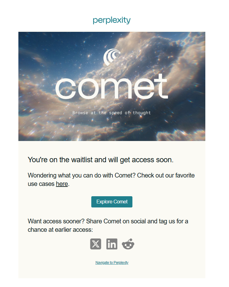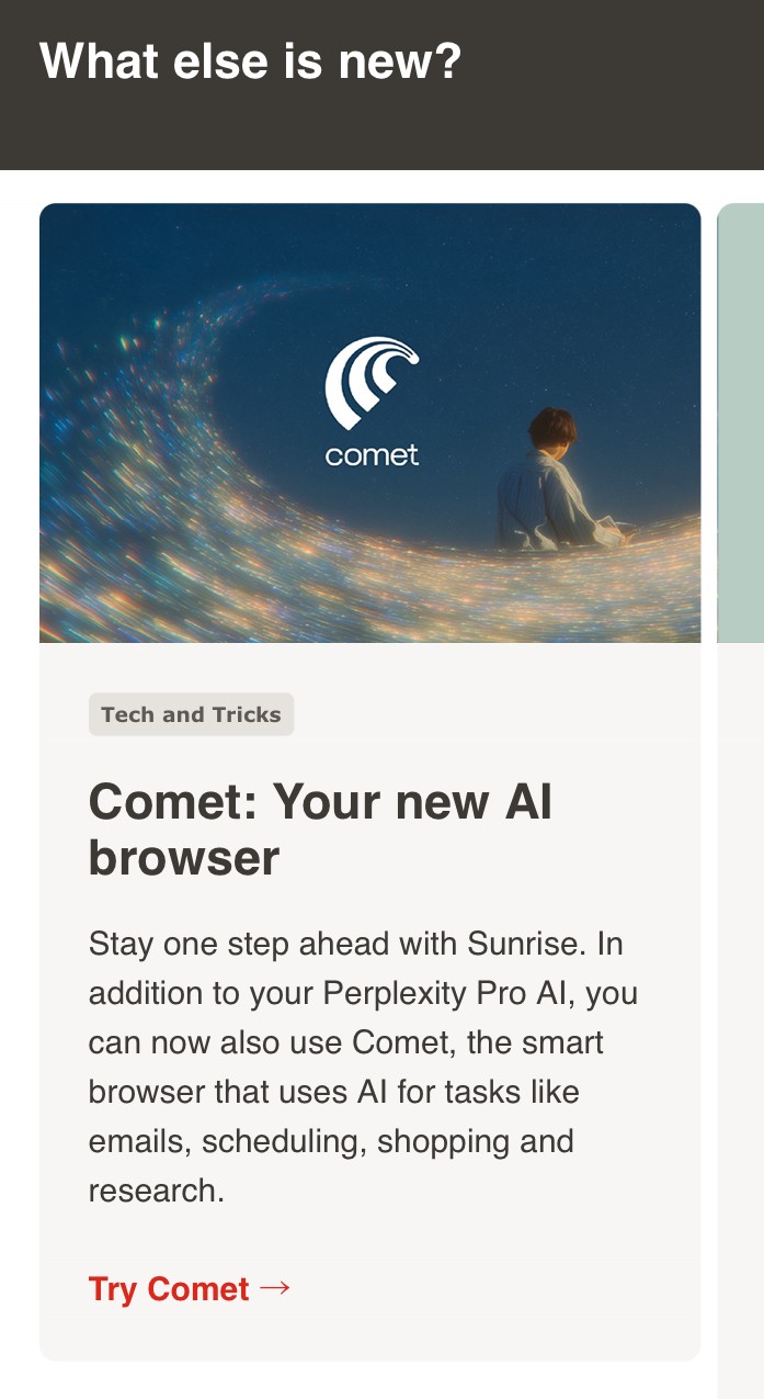I have received a promotional email from Sunrise saying that Comet browser is now available in addition to Perplexity subscriptions. However Comet page requires special invitation. I cannot download it while being signed in with my Perplexity account. Kindly advise how to get Comet.