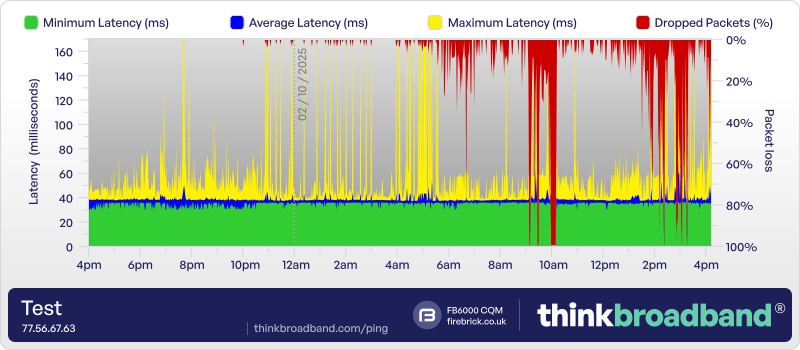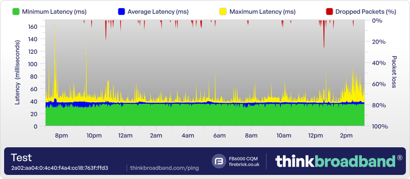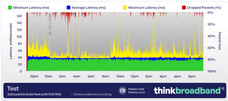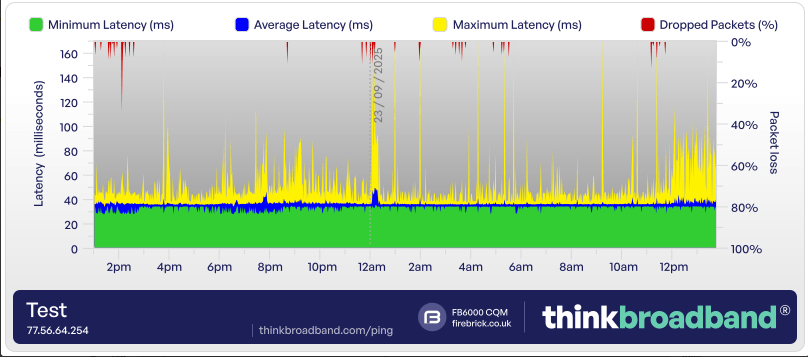 Wiederkehrende Paketverluste, insbesondere abends (zwischen ca. 19:00 und Mitternacht) und erneut ab dem frühen Nachmittag.