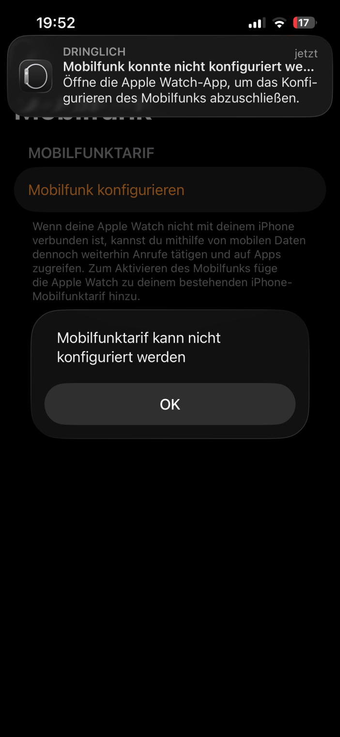 In der Apple-Watch-App habe ich folgende Situation. Was ist falsch, was kann ich tun? Nach 100 Fehlermeldungen und Versuchen steht sie nun auf „Nicht verwendet”.