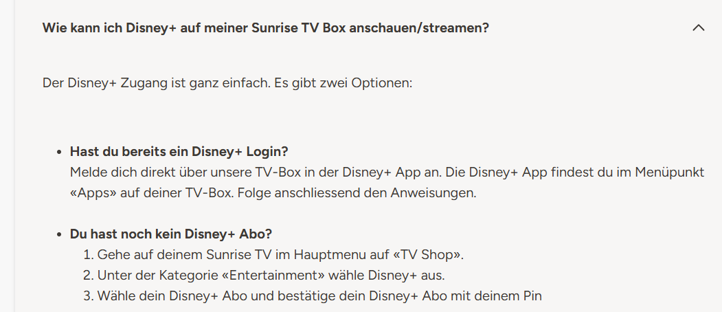 Maxmax97 Hallo zusammen ich habe disney+ über sunrise.ch abgeschlossen kann es jedoch nicht aktivieren was kann ich tun?
