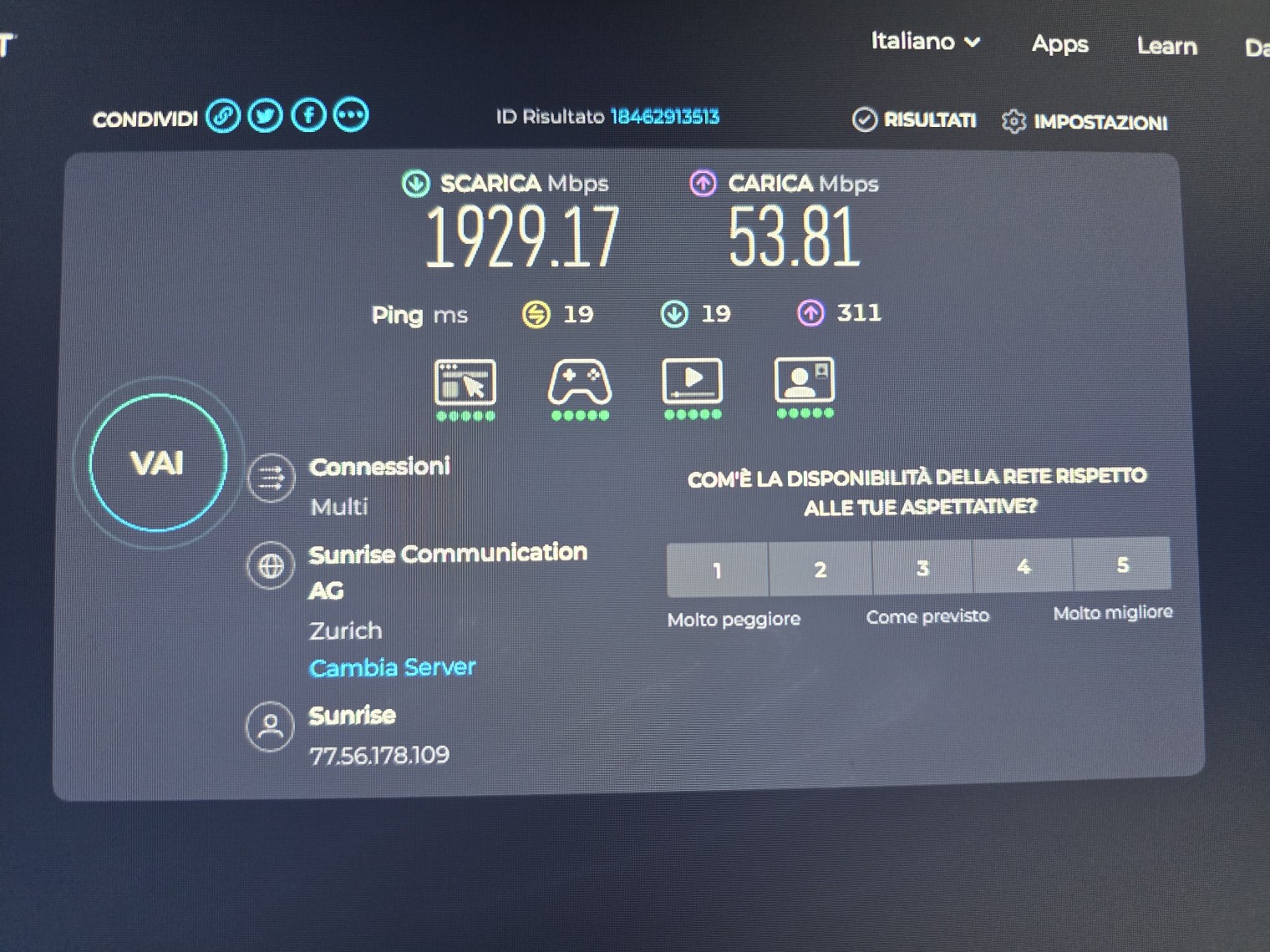 Inoltre, è da notare che un dispositivo con soli 100mbit è attualmente collegato alla LAN 4, sebbene quest’ultima offre una velocità fino a 2,5Gbit. Ulteriori informazioni sulla velocità di 2.5 Gbit sono disponibili qui.