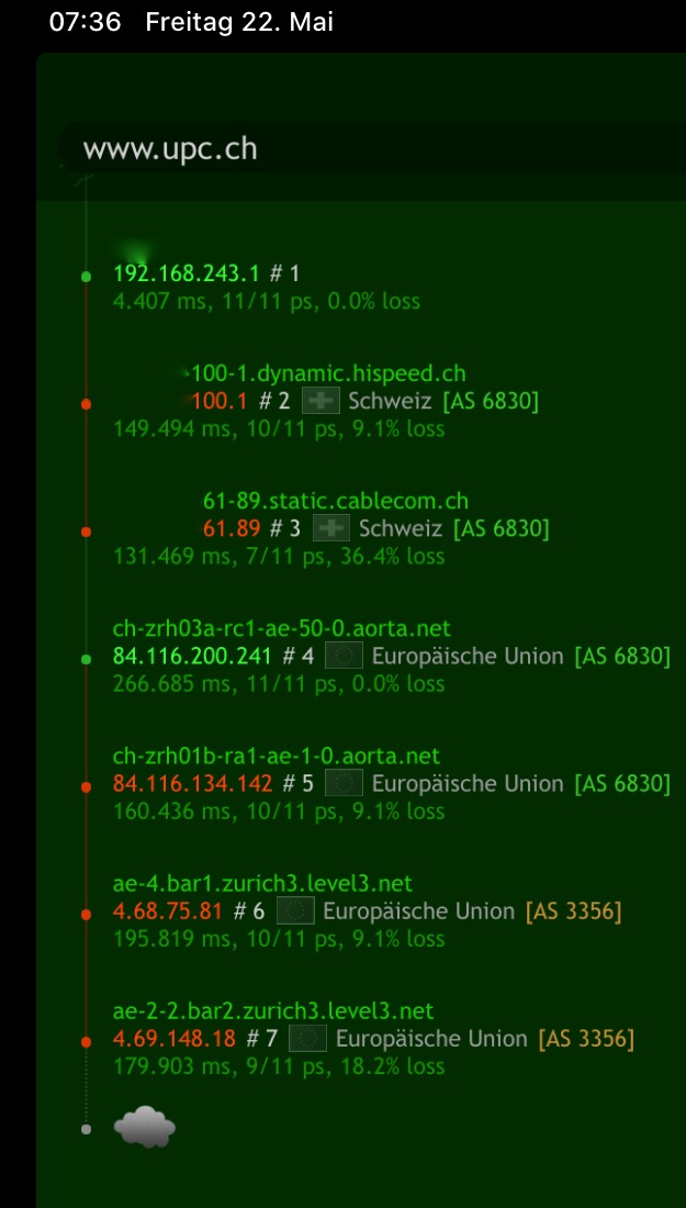 Warum ist dies so? Ich habe viele Messungen gemacht. Wie es aussieht wird alles über “aorta.net” geroutet, und dort gehen Pakete verloren.