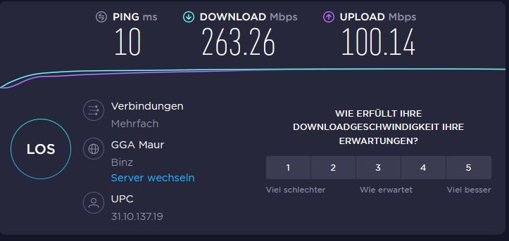 Resultat mit speedtest.net und quickline weiterhin nur um die 300 bis 400 mbps. Warum ist das so? Haben die keine guten Testserver?