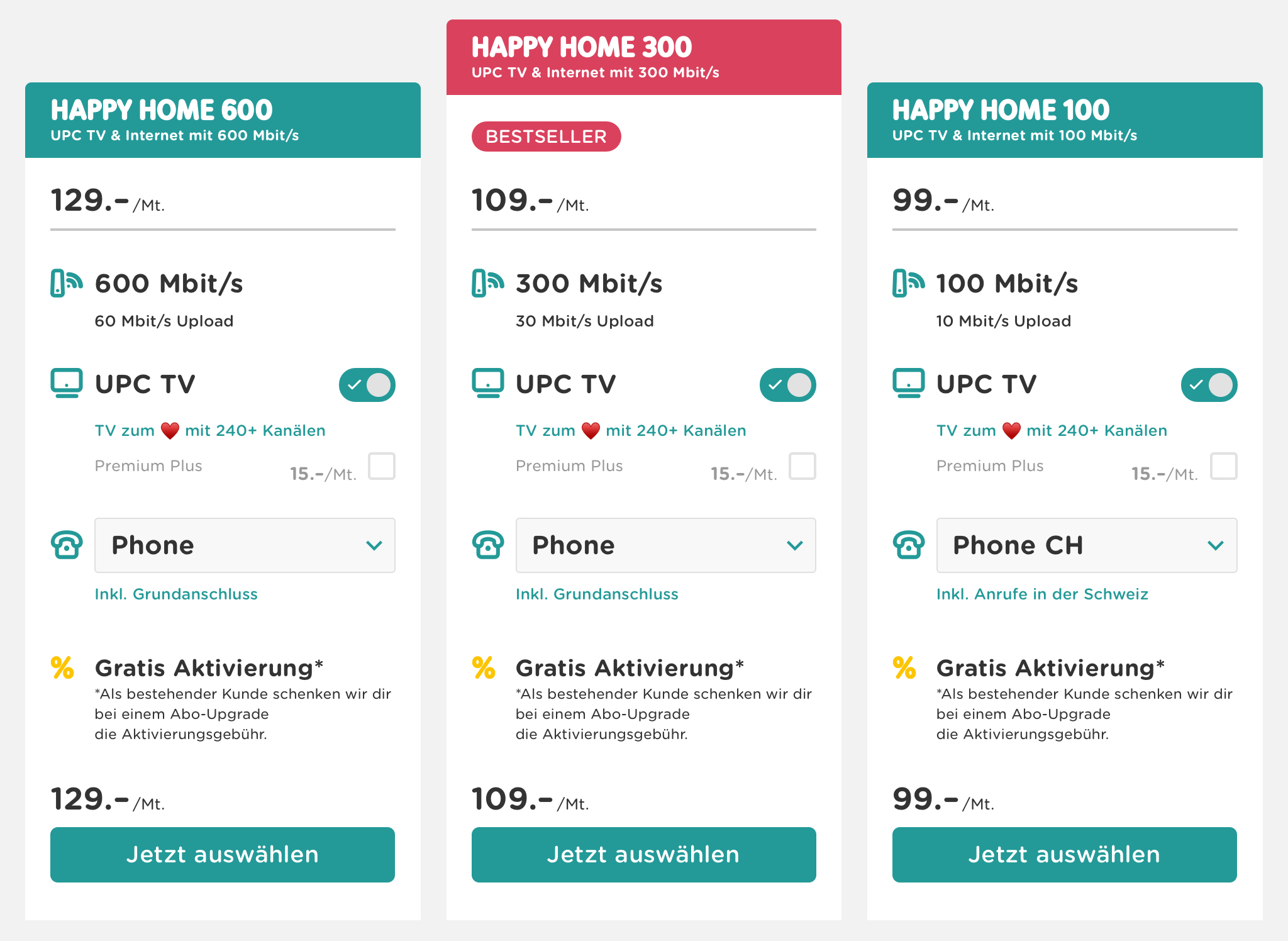 4. Die von Dir erwähnten Sender müssen aus Platzgründen auf IPTV umgestellt werden und können von daher nur noch mit der neuesten UPC Box empfangen werden. Die Abos gibt es ab 89.- je nach Internetgeschwindigkeit. *