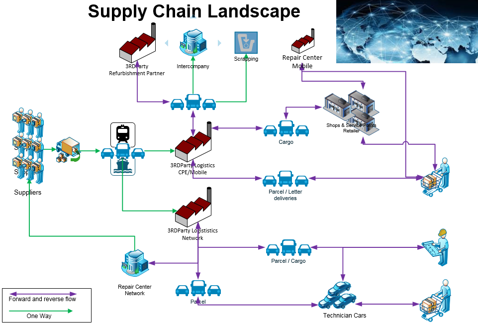 Il nostro partner logistico invia i pacchi direttamente ai clienti che hanno effettuato l’ordinazione. Inoltre, consegnano materiale ai nostri negozi, Service Point e partner. A tutto ciò bisogna aggiungere i resi dei negozi e dei partner, dei tecnici del servizio assistenza e dei clienti: parliamo di colli difettosi o non ritirati. Il grafico seguente mostra il processo logistico: