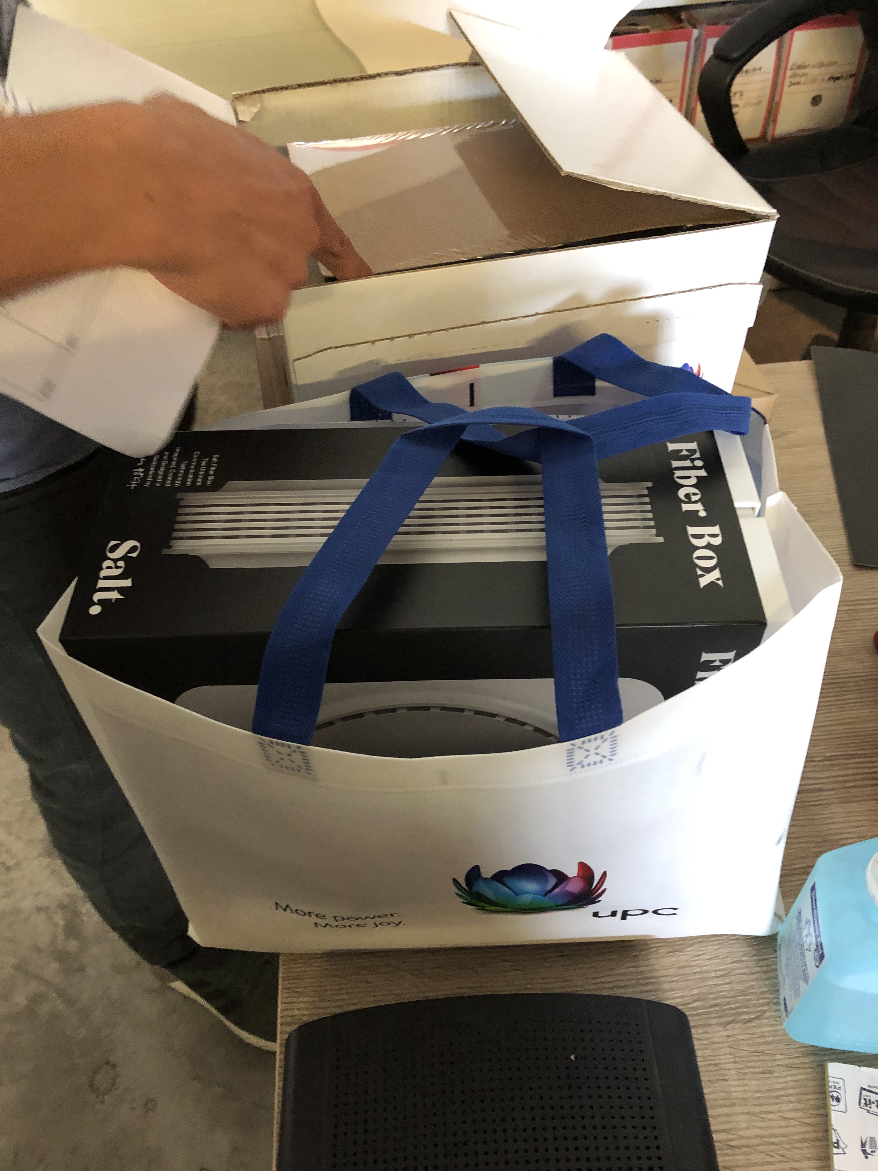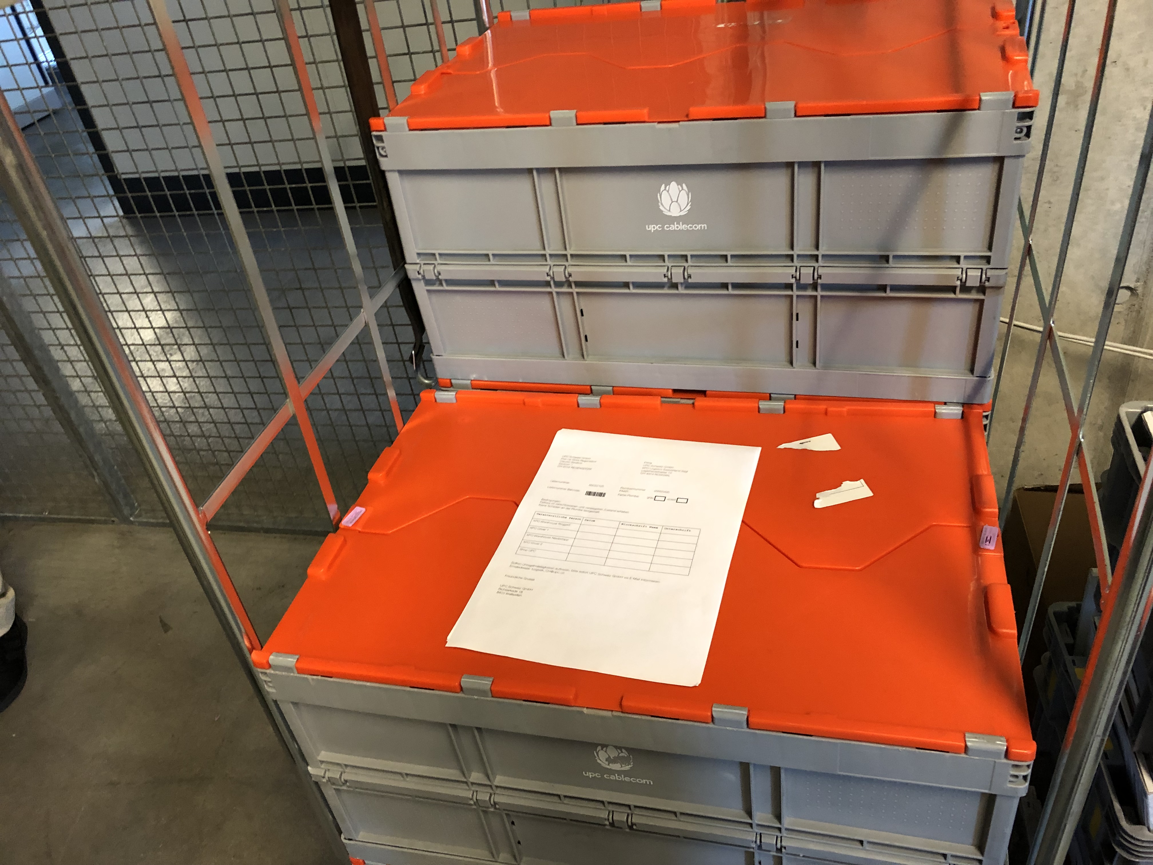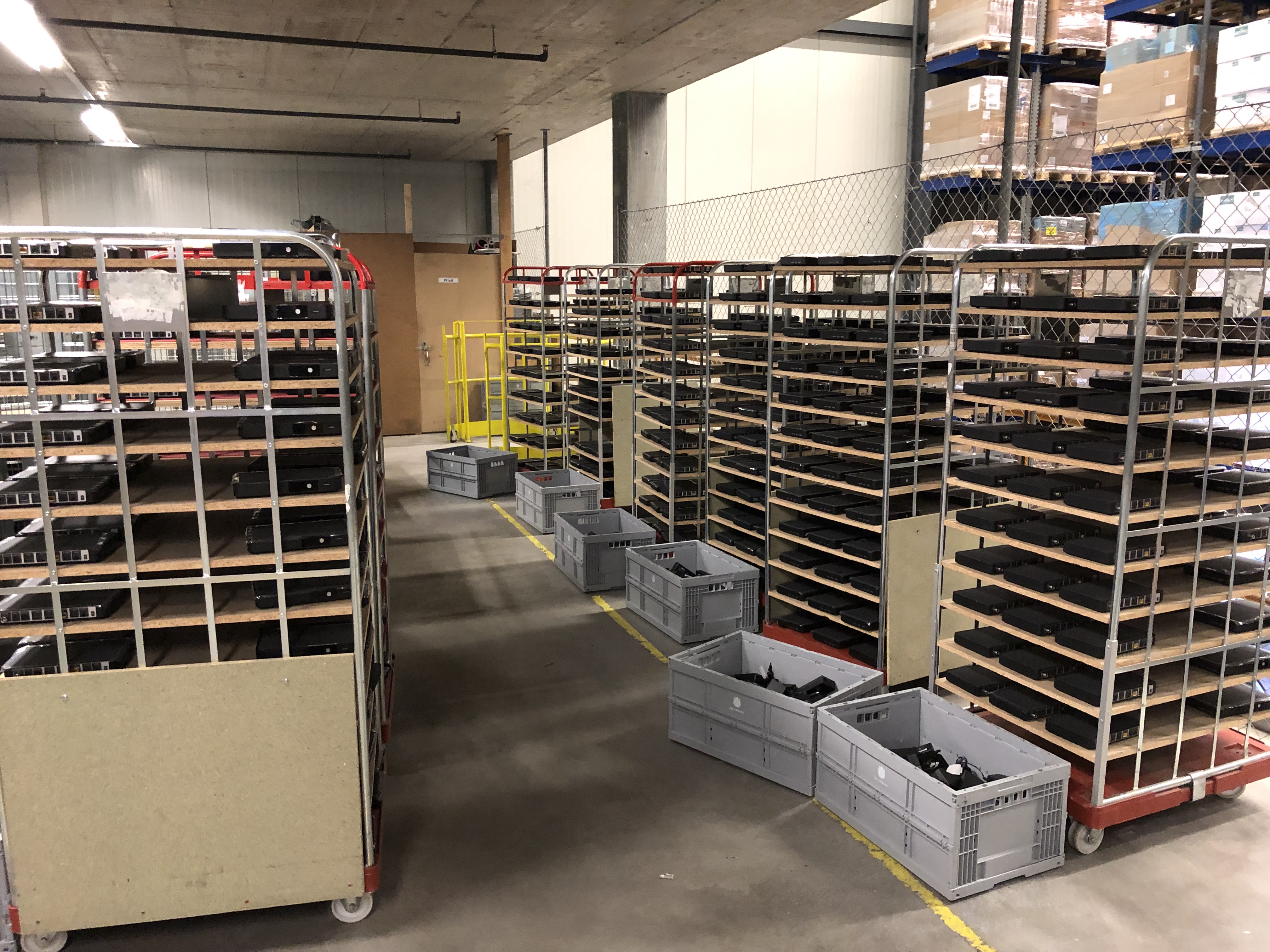 Alla fine del giro mi fermo un attimo per ammirare il capannone: è altissimo. Tutti gli articoli sono accatastati uno sopra l’altro, i pallet vengono movimentati con un muletto. Venhar menziona anche un altro settore estremamente importante: si chiama «Critical Spare Parts». In questo settore del magazzino vengono stoccati componenti di rete da sostituire in seguito a un’interruzione del servizio di rete. Questo settore è accessibile dal servizio consegne 24 ore su 24 e 7 giorni su 7. Se serve un componente di rete, il servizio consegne viene incaricato di andare a prenderlo in questo magazzino e di consegnarlo al destinatario. Qui il fattore determinante è la velocità, perché in questi casi i clienti non dispongono dei nostri servizi e noi dobbiamo ripristinarli al più presto. Alla fine chiediamo a Venhar se i clienti inviano anche merce che non ha nulla a che fare con UPC. Sorride e ci mostra un router SALT ricevuto da poco. Uno dei tanti esempi.